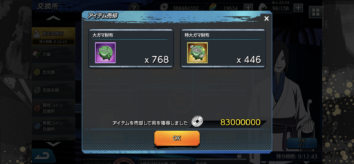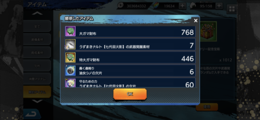 URナルトの欠片:11(前日比:-16個、累計:324個、1日あたり平均:24.92個)少年ナルトの欠片:30(前日比:+15個、累計:311個、1日あたり平均:23.92個)UR七代目ナルトの欠片:39(前日比:+9個、累計:319個、1日あたり平均:24.54個)