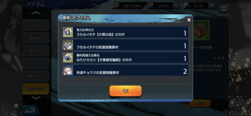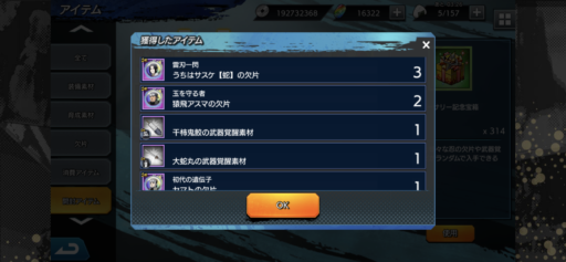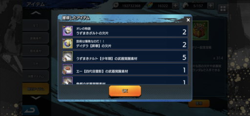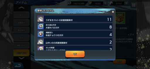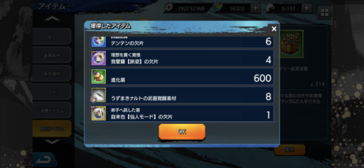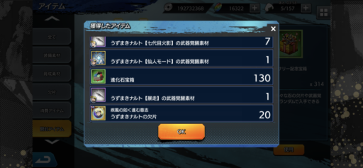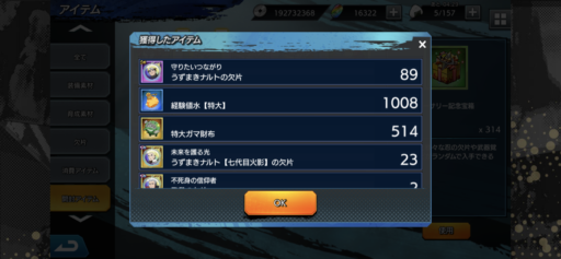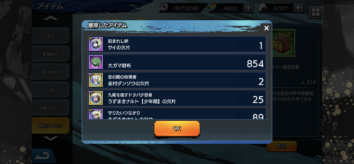 URナルトの欠片:20(前日比:-12個、累計:113個、1日あたり平均:28.25個)