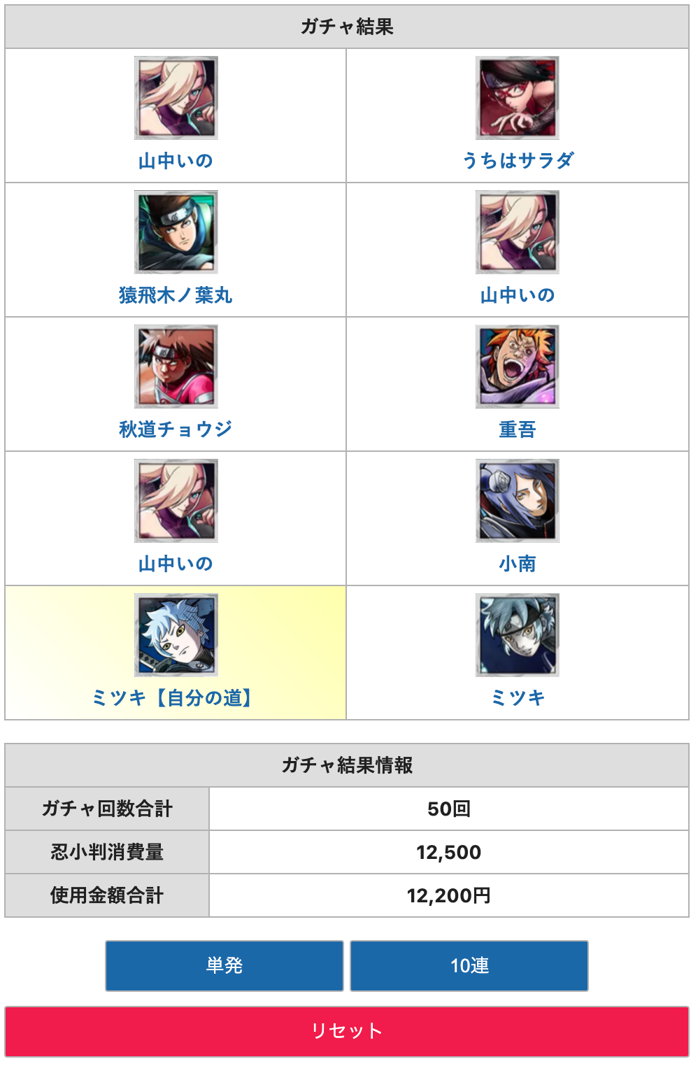 満ちた月が照らす道ガシャの10連シミュレータです。ガシャを引く際の参考にしてください。 ※排出確率は星3, 星4を合算しております。ご了承ください。